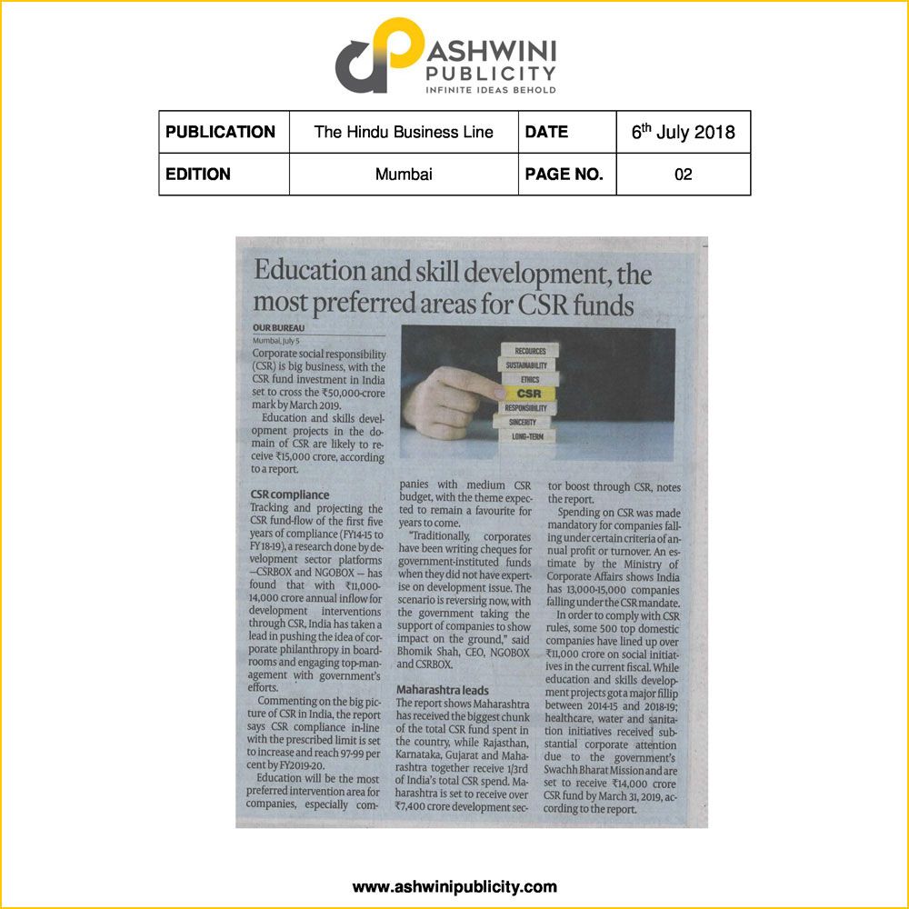 ASHWINI PUBLICITY has been successful in setting realistic expectations to deliver the best performing PR, be it a startup or business expansion, product launch or crisis management. Our history speaks an instant love for Culture, Education, CSR, Art, FMCG, Lifestyle, Luxury, IT/Technology, Hospitality, Travel & Tourism, and Large Format Events to make us the preferred brand partner for companies to test the Indian market today.